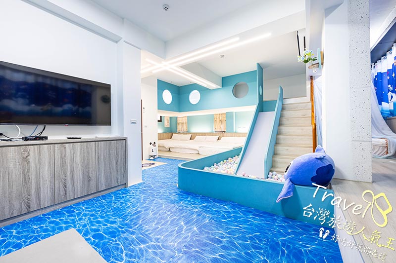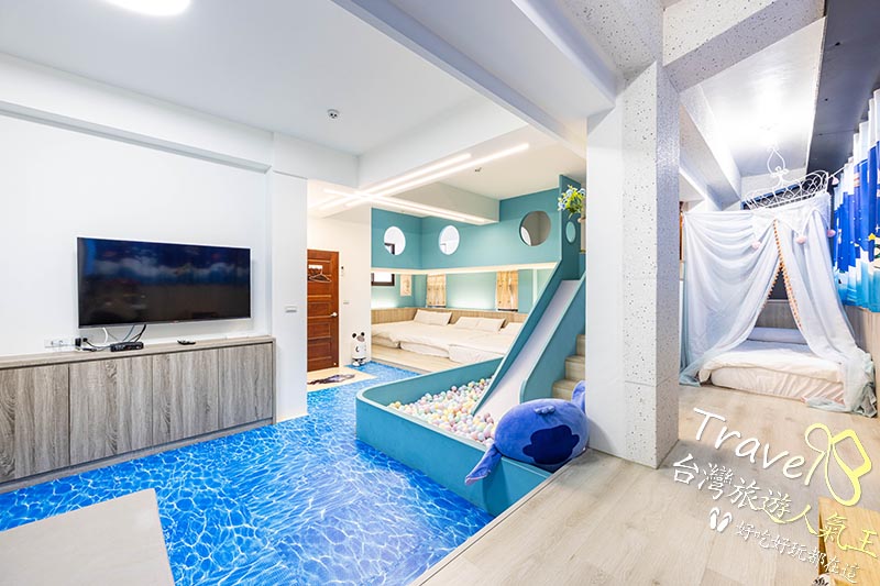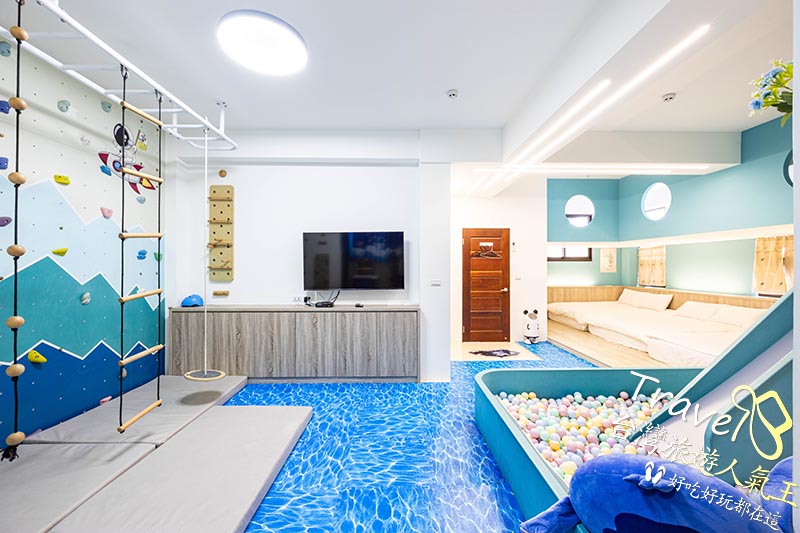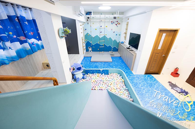 室內兒童遊戲區:扮家家酒廚具、兒童溜滑梯、球池